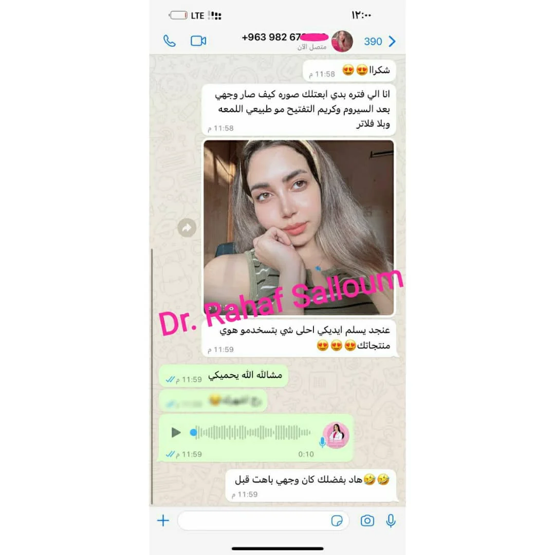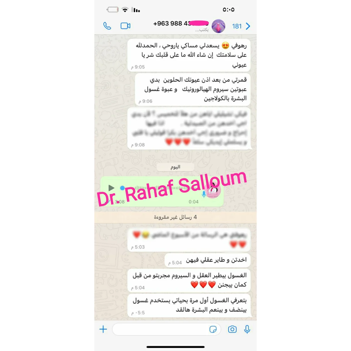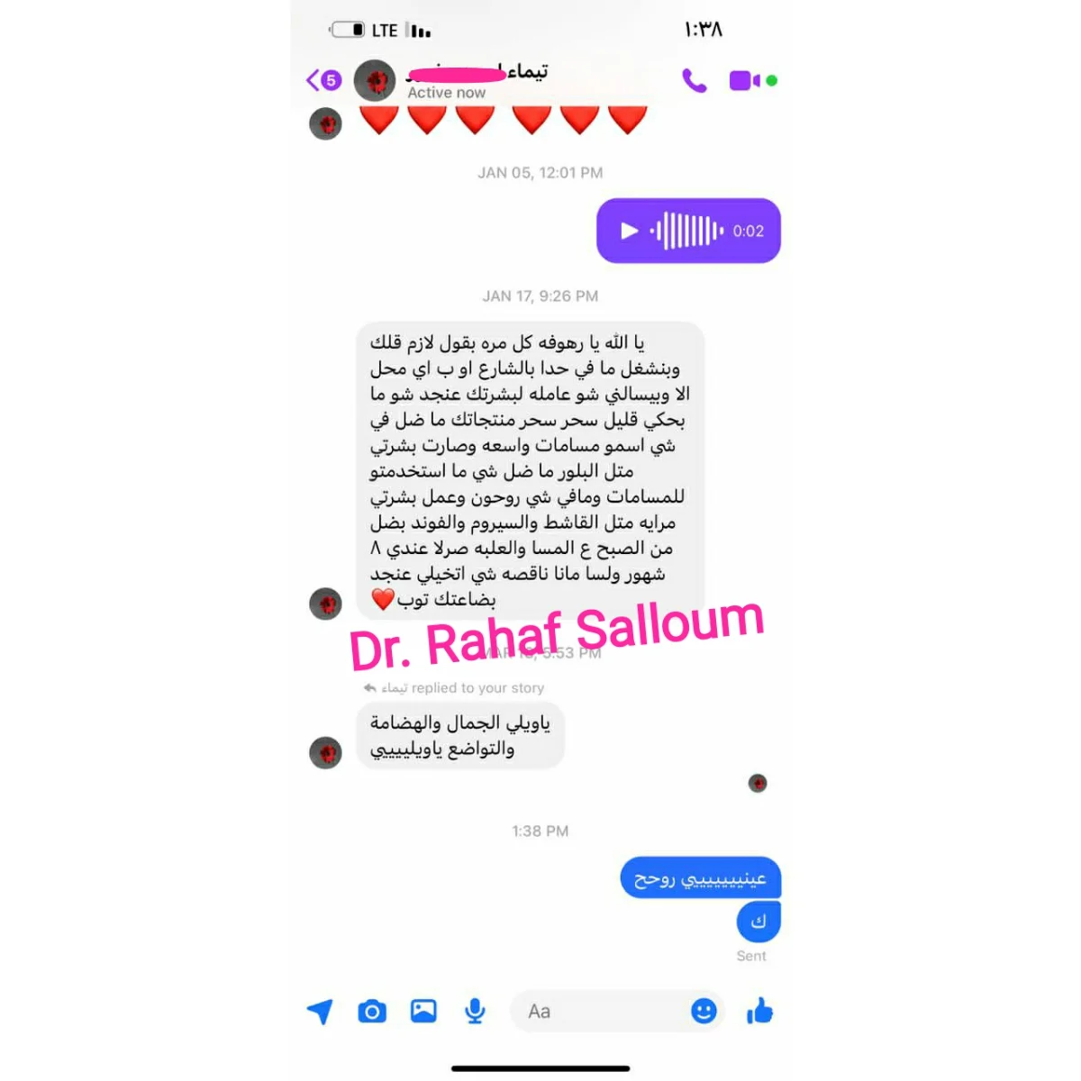 منتجات طبيعية أصنعها بيدي وبخبرتي، باستخدام مواد مختارة بعناية جدا ، وتحت إشرافي المباشر أنا الدكتورة رهف زهير سلوم، صيدلانية وأخصائية عناية بالبشرة لطلب المنتجات مباشرة بدون استشارة اضغط هنا اما لطلب إستشارة مجانية بالكامل يتم تعبأة الاستبيان ليتم التواصل معك و معالجة حالتك. الاسم *اسم الاب *اسم العائلة *رقم الواتساب للتواصل *تحميل صورة بدون فلاتر و بدون مكياج *اختر الصورةلم يتم تحميل صورةDelete uploaded fileتفاصيل الحالةارسال الاستشارة منتجات العناية بالبشرة روتين البشرة الدهنية 160.000 ل.س أضف الى السلة غسول البشرة بالكولاجين 60.000 ل.س أضف الى السلة غسول لاكتيك اسيد 60.000 ل.س أضف الى السلة كريم الشد 150.000 ل.س أضف الى السلة كريم الكلف المعند 3 250.000 ل.س أضف الى السلة خلاصة الأوليفيرا للترطيب والأكزيما 75.000 ل.س أضف الى السلة روتين البشرة الدهنية 160.000 ل.س أضف الى السلة غسول البشرة بالكولاجين 60.000 ل.س أضف الى السلة غسول لاكتيك اسيد 60.000 ل.س أضف الى السلة كريم الشد 150.000 ل.س أضف الى السلة كريم الكلف المعند 3 250.000 ل.س أضف الى السلة خلاصة الأوليفيرا للترطيب والأكزيما 75.000 ل.س أضف الى السلة منتجات العناية بالشعر كرياتين طبيعي أضف الى السلة خلطة السبع زيوت 100.000 ل.س أضف الى السلة بديل الزيت 100.000 ل.س أضف الى السلة بخاخ تطويل الشعر 60.000 ل.س أضف الى السلة مجموعة العناية بالشعر 260.000 ل.س أضف الى السلة كرياتين طبيعي أضف الى السلة خلطة السبع زيوت 100.000 ل.س أضف الى السلة بديل الزيت 100.000 ل.س أضف الى السلة بخاخ تطويل الشعر 60.000 ل.س أضف الى السلة مجموعة العناية بالشعر 260.000 ل.س أضف الى السلة منتجات الميكاب الطبي جل رموش 65.000 ل.س أضف الى السلة جل حواجب 50.000 ل.س أضف الى السلة مزيل مكياج 50.000 ل.س أضف الى السلة مورد الخدود والشفاه 40.000 ل.س أضف الى السلة برايمر 60.000 ل.س أضف الى السلة فوند طبي واقي من الشمس 150.000 ل.س أضف الى السلة جل رموش 65.000 ل.س أضف الى السلة جل حواجب 50.000 ل.س أضف الى السلة مزيل مكياج 50.000 ل.س أضف الى السلة مورد الخدود والشفاه 40.000 ل.س أضف الى السلة برايمر 60.000 ل.س أضف الى السلة فوند طبي واقي من الشمس 150.000 ل.س أضف الى السلة آراء و النتائج